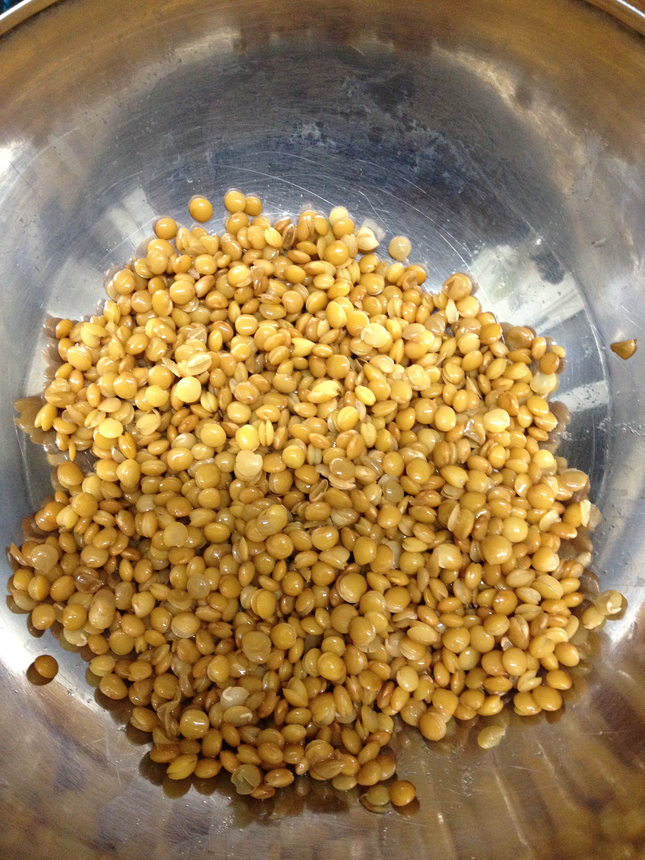 Al escurrir las lentejas, pasarles un agua y ponerlas en un bol junto con la salsa de soja.