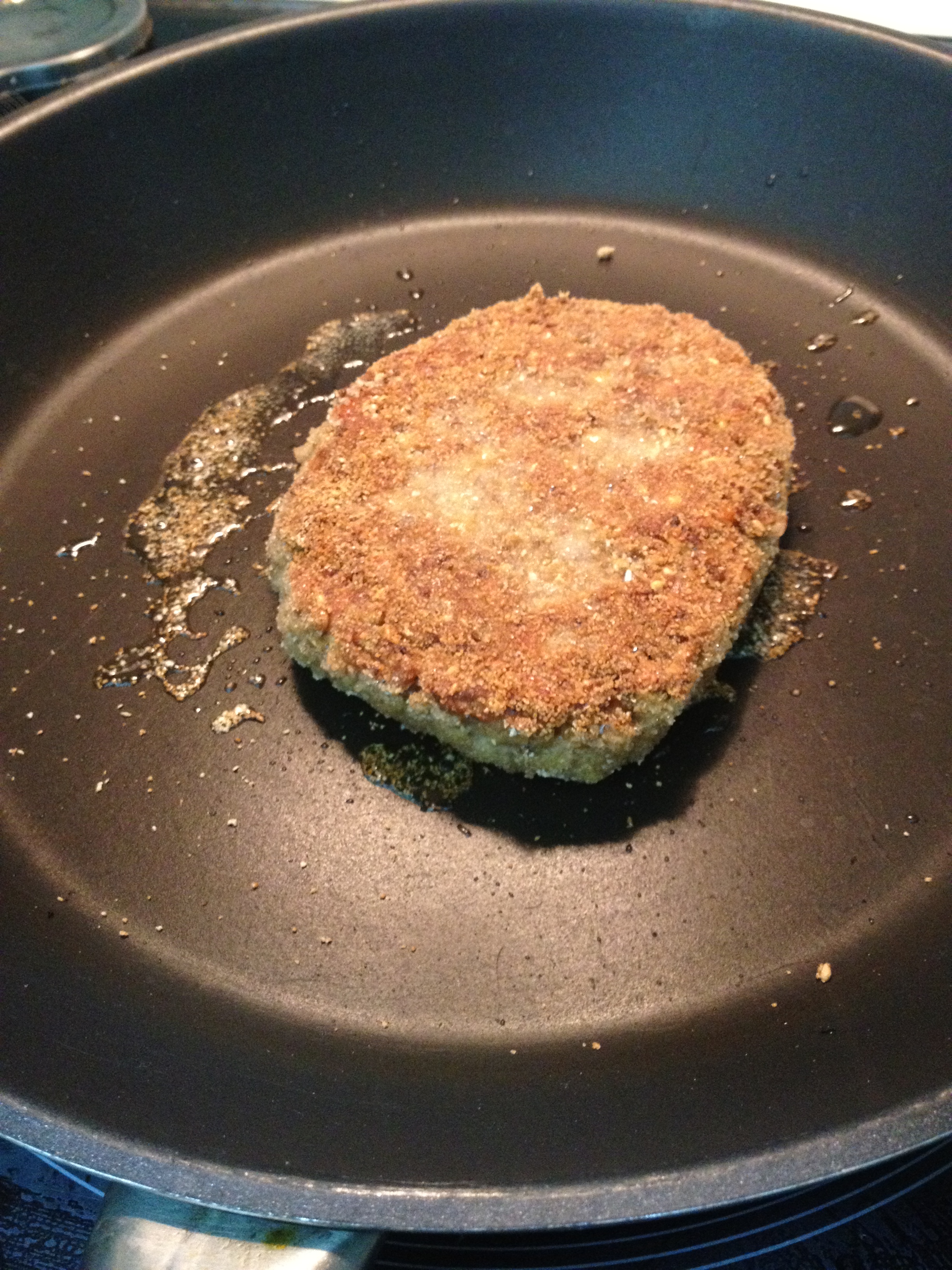 Ponemos una sartén a calentar a fuego alto y cuando esté, le ponemos una espiral de aceite virgen del tamaño de la hamburguesa (para que la fritura sea más ligerita). Doramos unos 3 minutos por cada lado con cuidado de que no se nos queme.