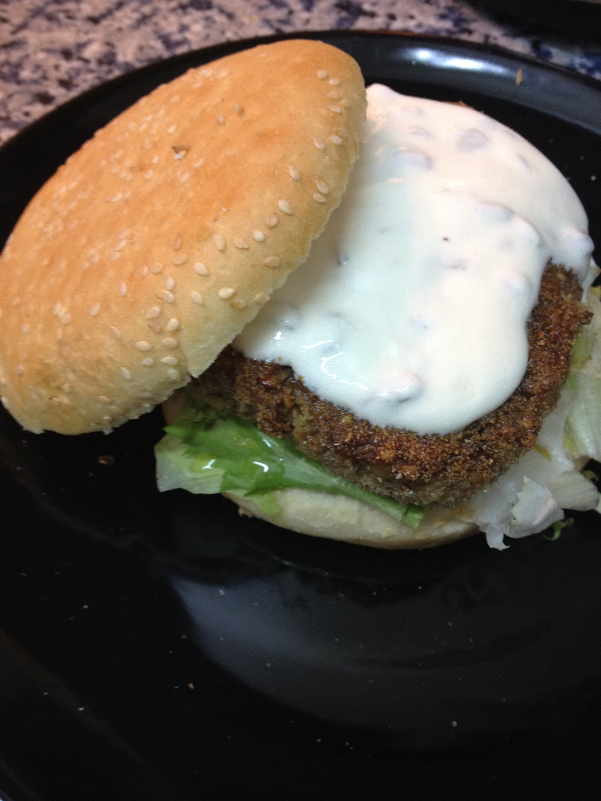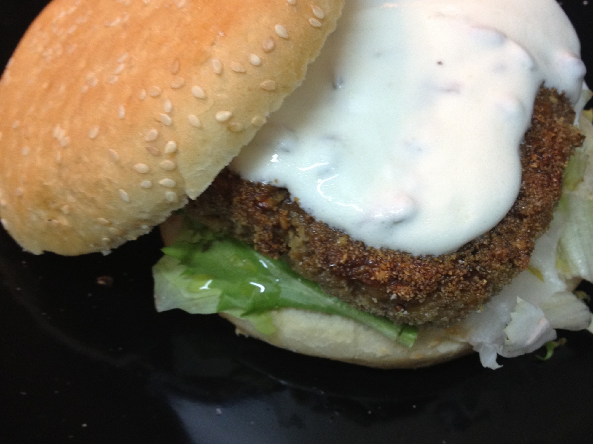 Ponemos una camita de lechuga con aceite y sal en el pan, la hamburguesa, unas cucharadas de salsa de yogur y presentamos.