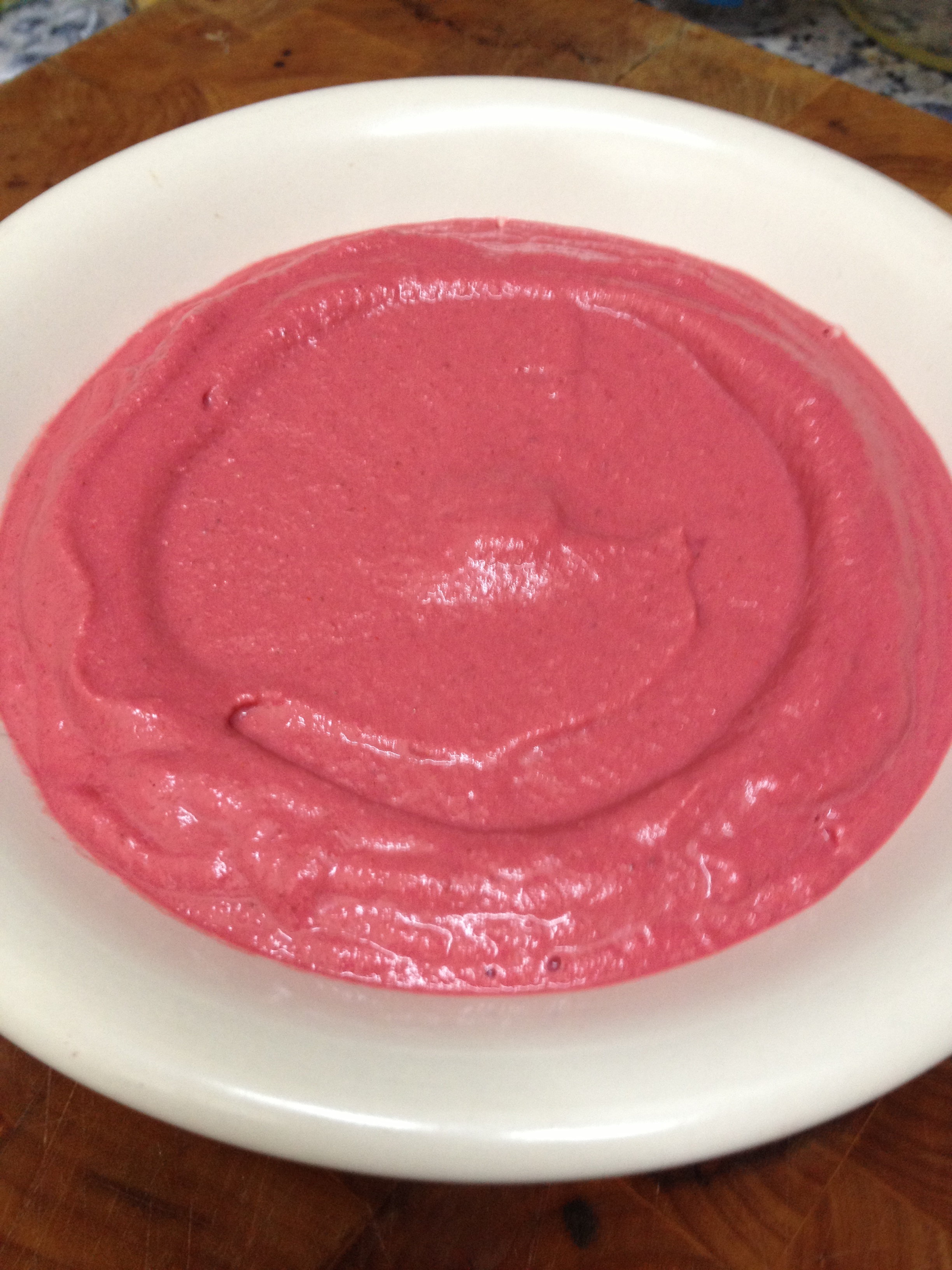 Una vez incorporado el aceite ponemos en un recipiente, tapamos con papel film y reservamos en la nevera un par de horas para que coja todo su sabor (si vas con el tiempo pegado, lo puedes poner nada más sacar de la batidora, pero no será lo mismo)