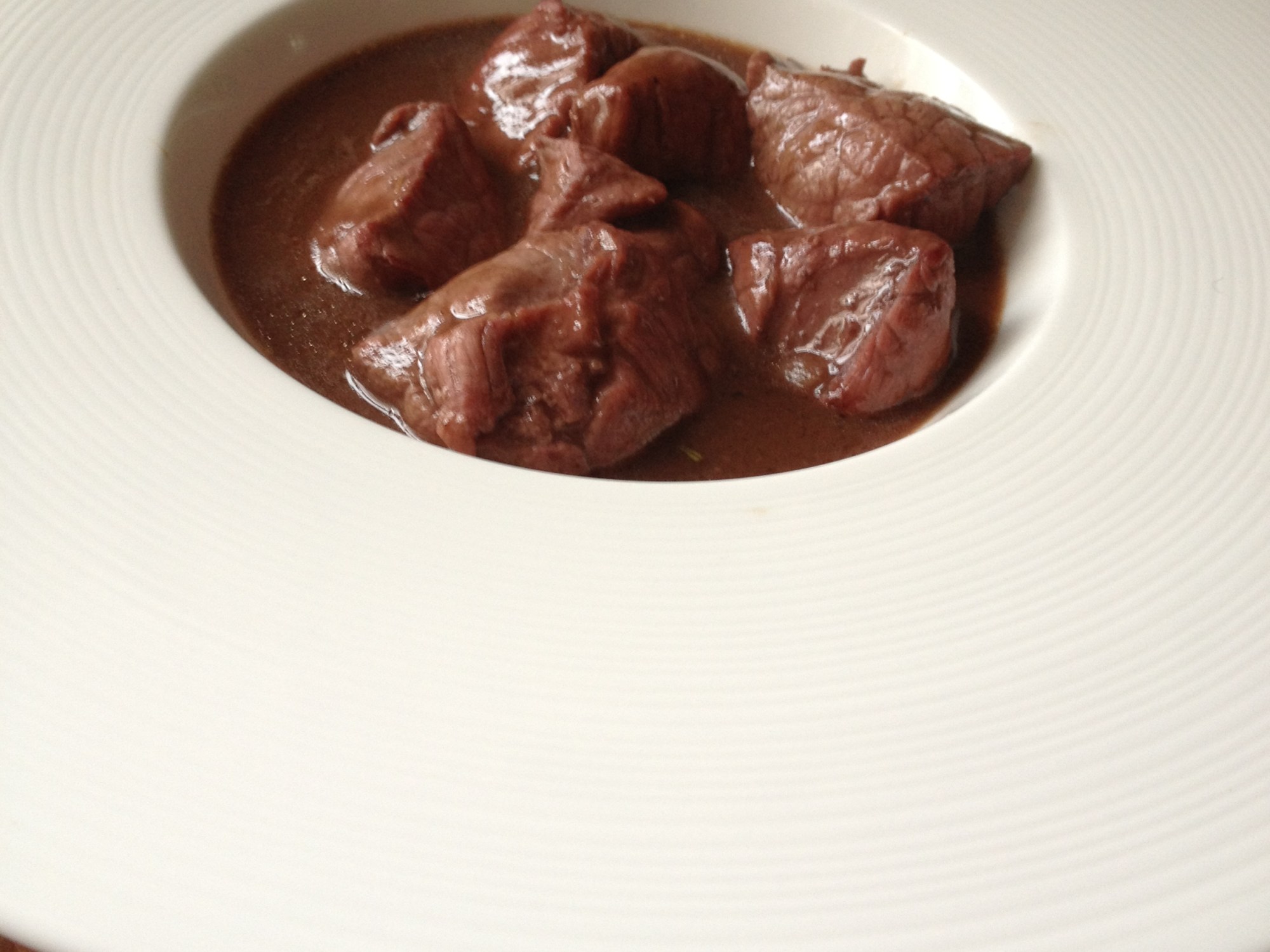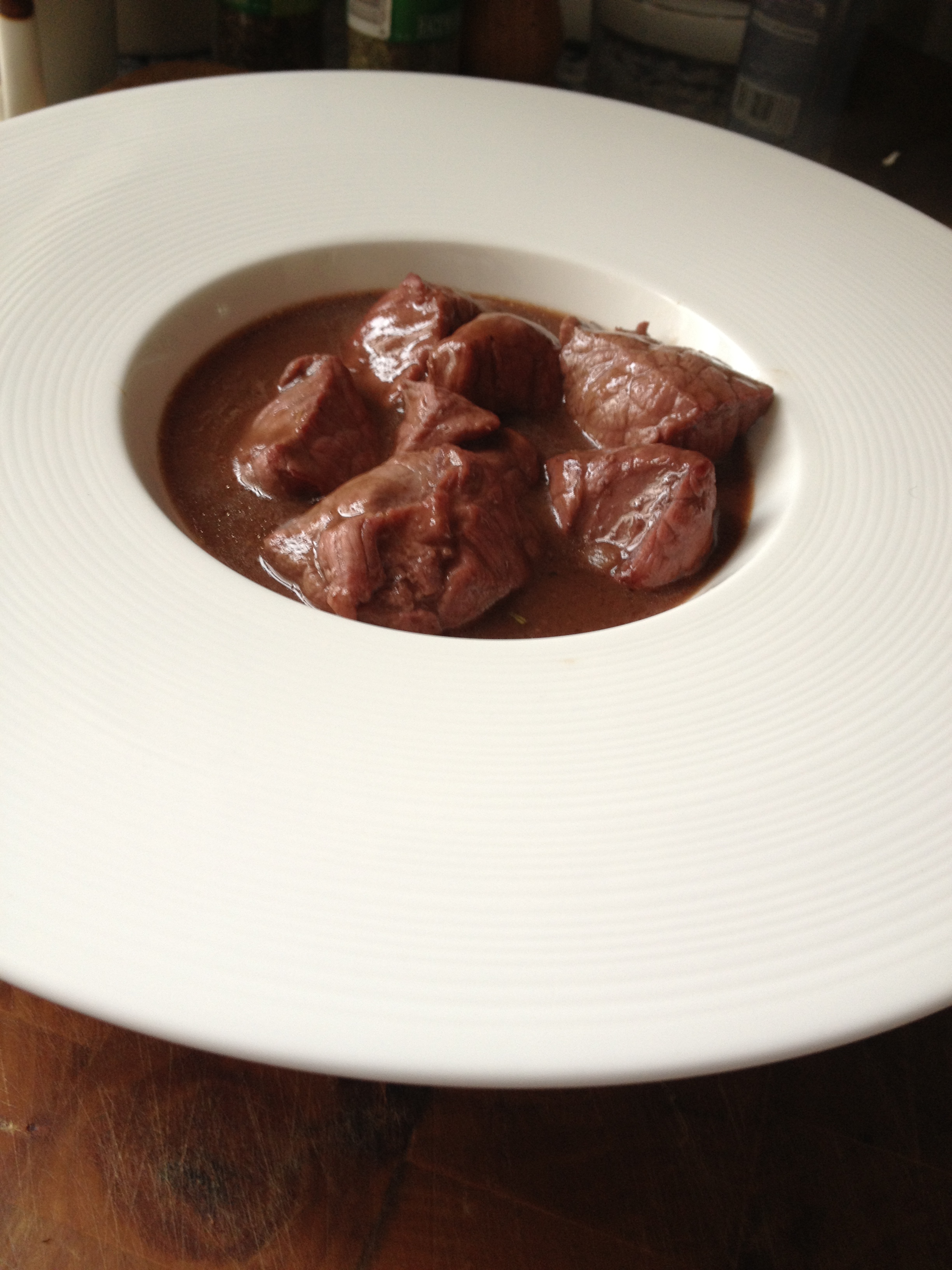 Se puede servir con unas patatas confitadas como guarnición. Truco: si vais muy justos de tiempo, haced la salsa en una olla aparte y cuando esté hecha (a los 30 minutos aprox), ponéis el ciervo marcado en la salsa dejándolo exactamente minuto y medio, de esta forma quedará extratierno. OJO porque si pasa del minuto y medio, la habéis liado parda y entonces el ciervo necesitará las 2 horas.