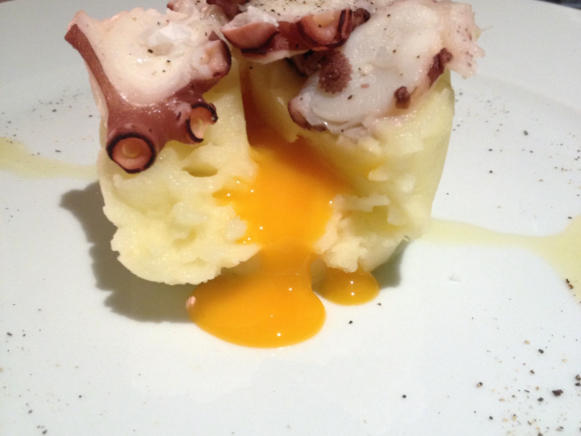 Es una receta que yo serviría a tus comensales sin decirles nada de lo que hay dentro, así cuando cortan la patata, de pronto se encuentran con esa escena de lujuria salvaje con el huevo chorreando viciosamente por la patata hasta caer al plato. Es para ponerse malo, de verdad.