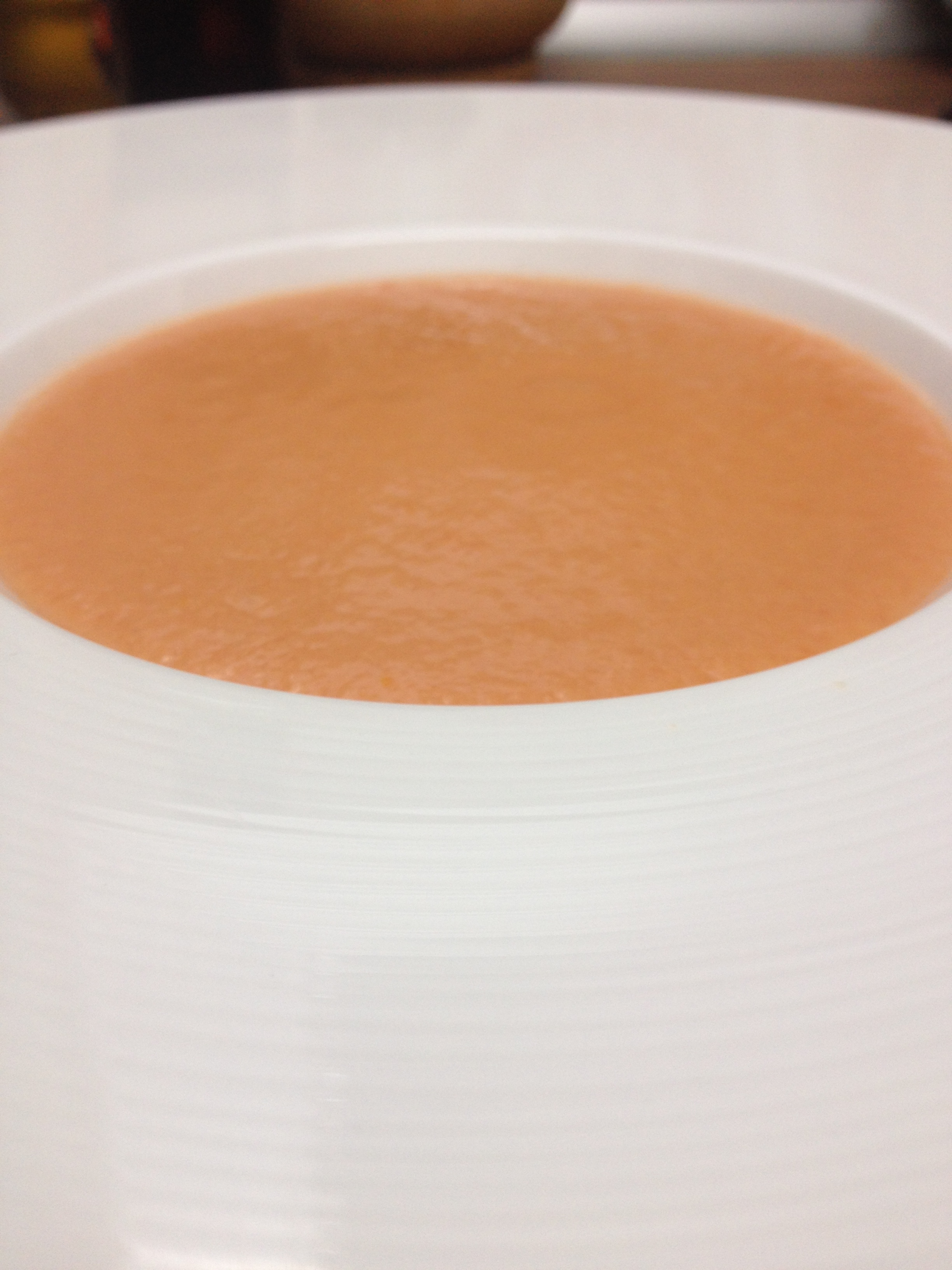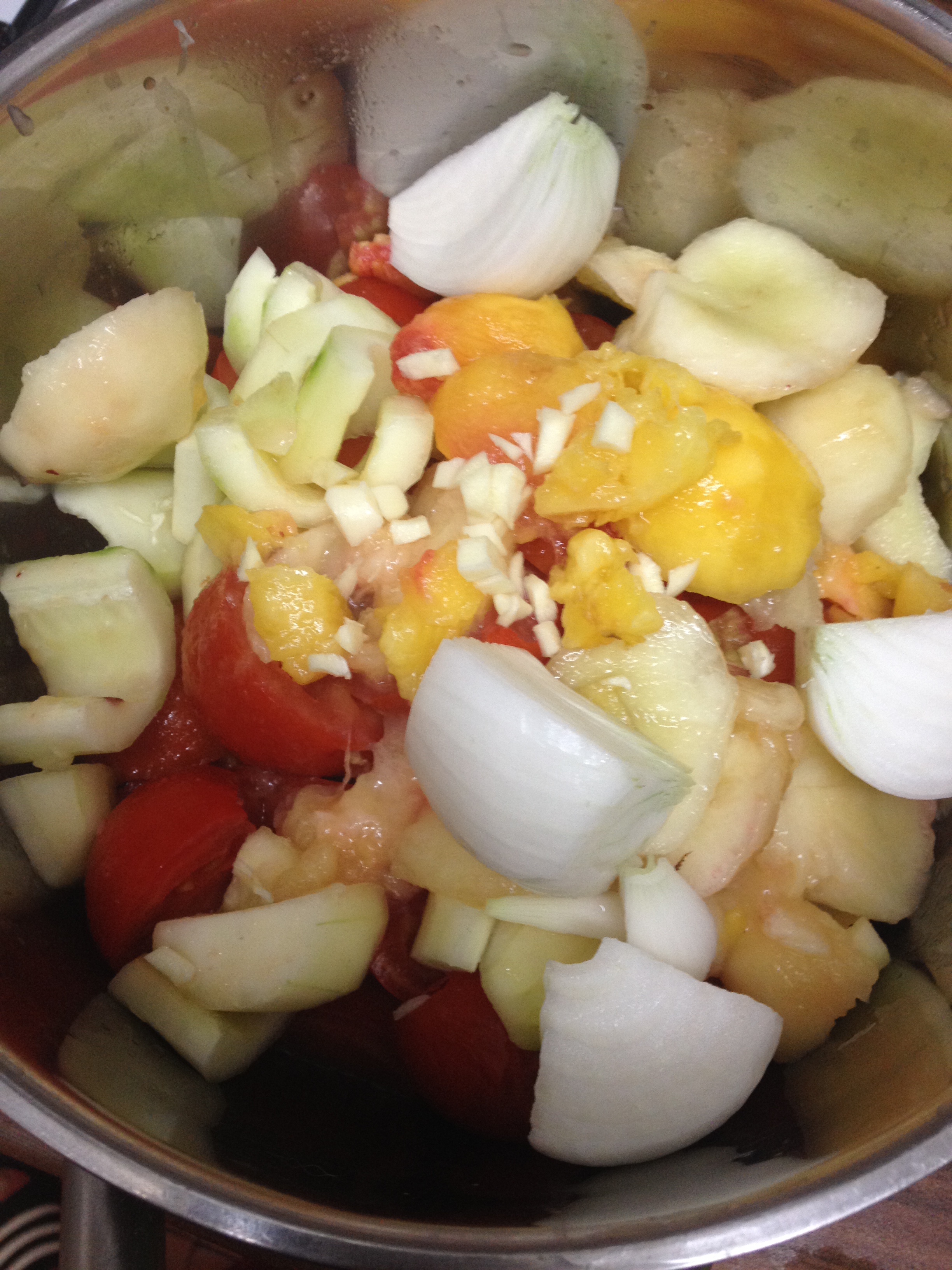 IMG_1964Y ahora sí, todo listo para empezar a ganar días de vida! Si no eres tan sosa como yo en este caso, podrías cortar una de las nectarinas en cuadraditos de 1×1 y ponérselos al gazpacho por encima para darle un punto de textura.