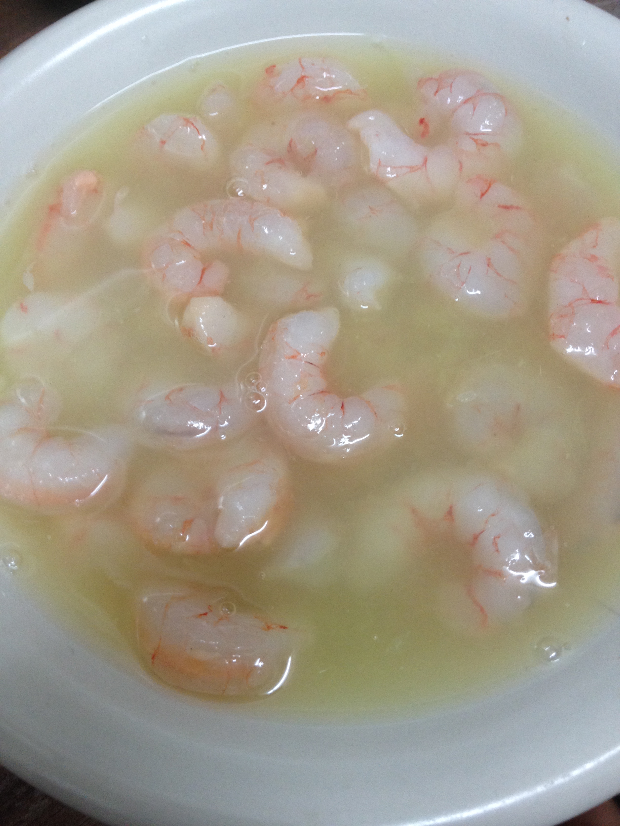 Vamos exprimiendo las limas. Cuando esté, ponemos las colas de gamba dentro del zumo de la lima para cocinarlas. Yo las encontré en el supermercado ya peladas y muy bien de precio (los 200 gr. salieron por unos 3,20€ si no recuerdo mal). Dejamos durante 10-15 minutos dependiendo del grosor de las gambas.