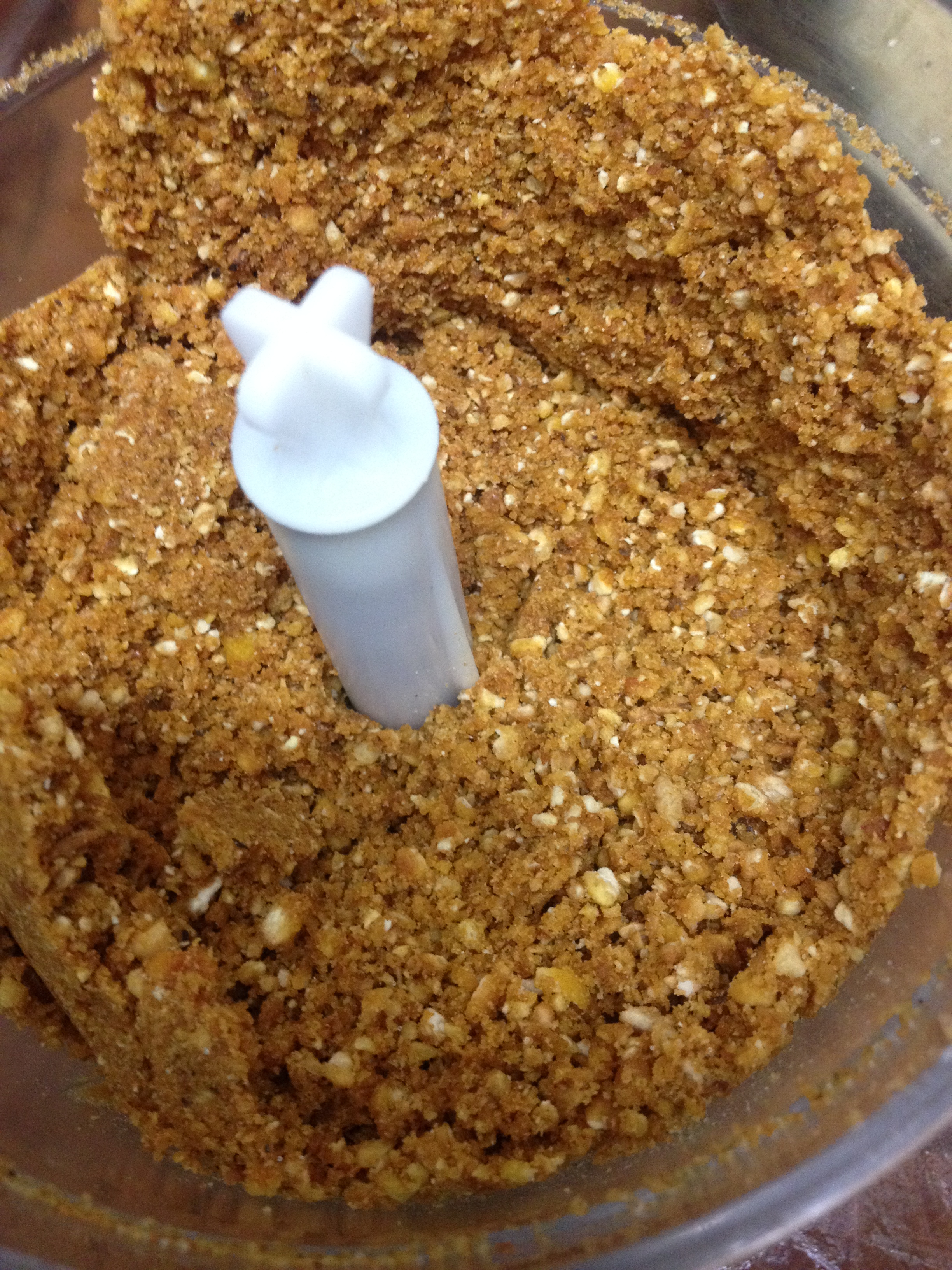 Mientras se marina, o no, vamos a picar los kikos con la ayuda de la picadora o lo que tengas por ahí (mortero, martillo percutor, etc), pero sin que quede muy pequeño, que mola mucho encontrarse trocitos.