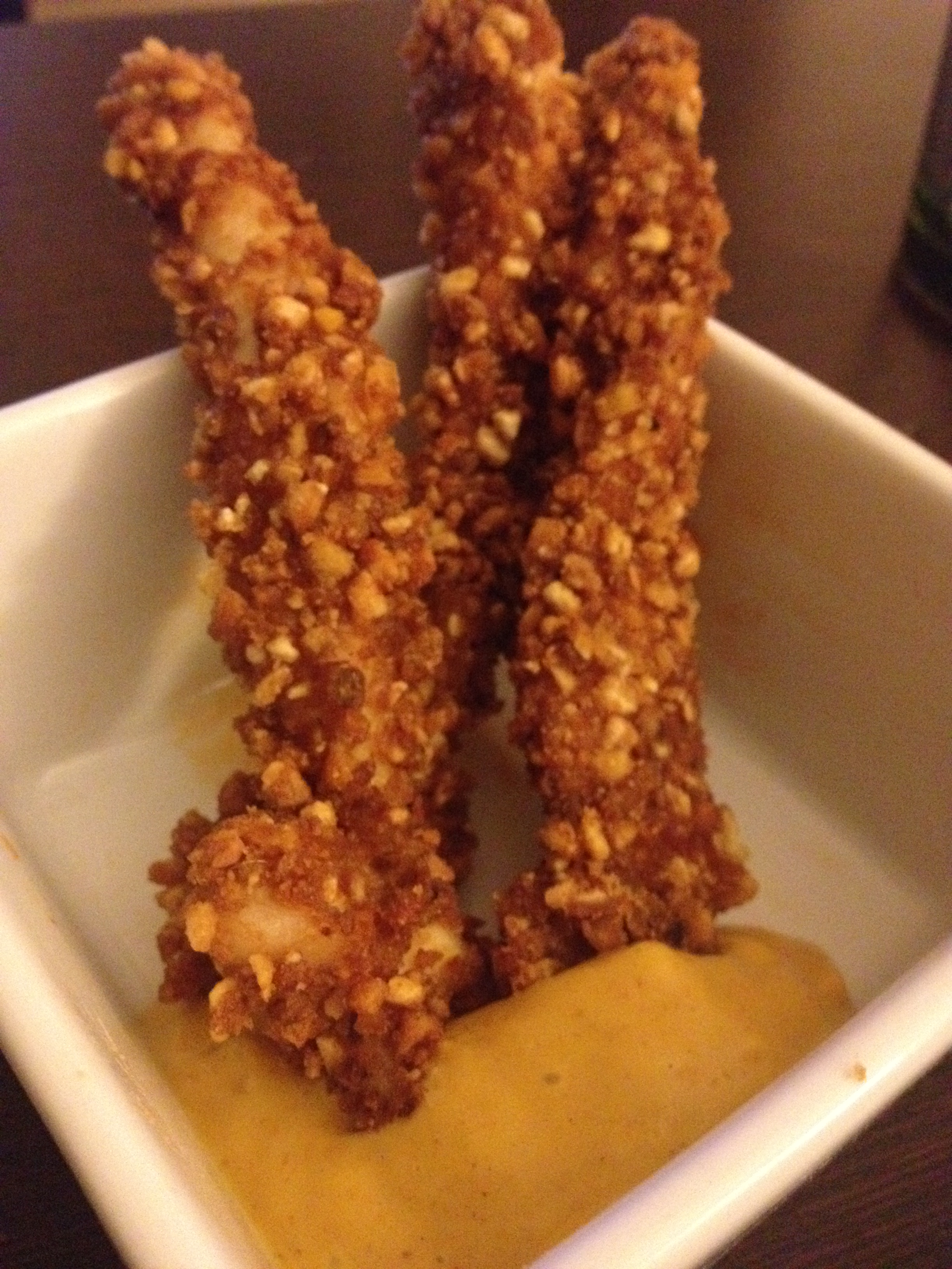 Lectores de mi coraçao, hoy vamos a tener una recetica bien divertida y bien rica. Si tenéis churumbeles, es un recetón para que los niños disfruten. Si sois como yo, que no tenéis, pero que sois como uno bien pequeñito, disfrutaréis como gorrinas en lodazal. Las pechugas están marinadas con leche y una cucharada de curry, pero si no tenéis, no queréis, sois alérgicos, sois un coñazo con los sabores, o sois del Ku klux Klan del curry, no lo pongáis y os ahorráis una hora de marinado y un disgusto. Lo guay de esta receta es que la vamos a preparar los fingers al horno, en vez de freírlo como suelen recomendar, por lo que lucharemos contra esas chichas que te salen cuando te sientas. Al lío.