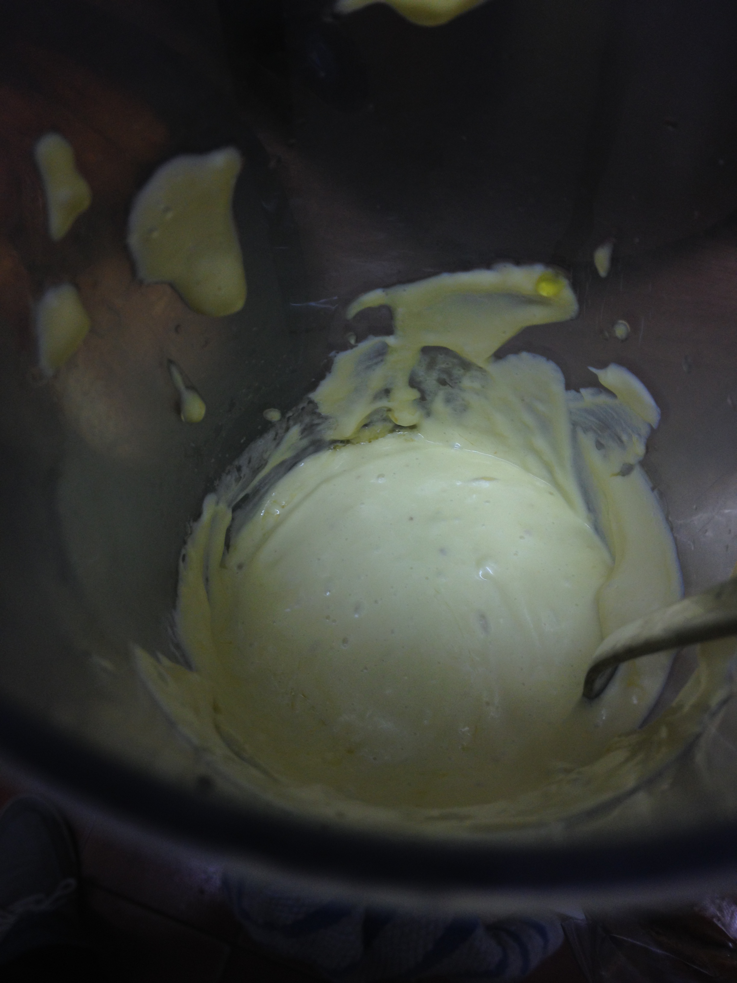 Pasados los 10-15, sacamos los ajos y esperamos a que el aceite enfríe para hacer el alioli. Ponemos un huevo en un vaso batidor, los ajos, sal y la mitad del aceite de confitar. Metemos la batidora hasta el fondo, le damos caña y a los 5 segundos comenzamos a subirla lentamente mientras echamos el resto del aceite al hilo (poco a póquer). Creo que es suficiente alioli para la cantidad que hacemos de papas, pero si queréis más, sólo hay que seguir añadiendo aceite al hilo.