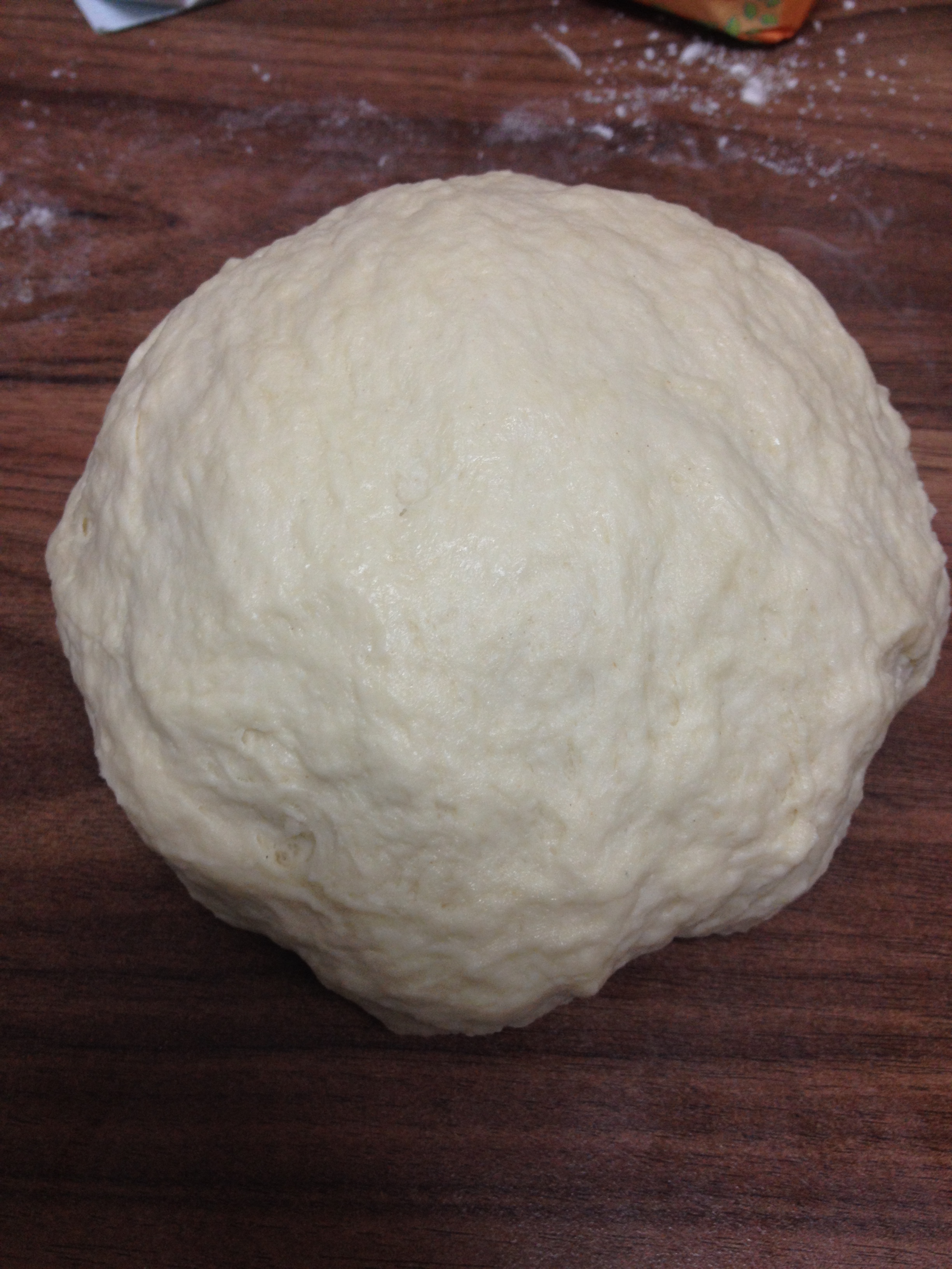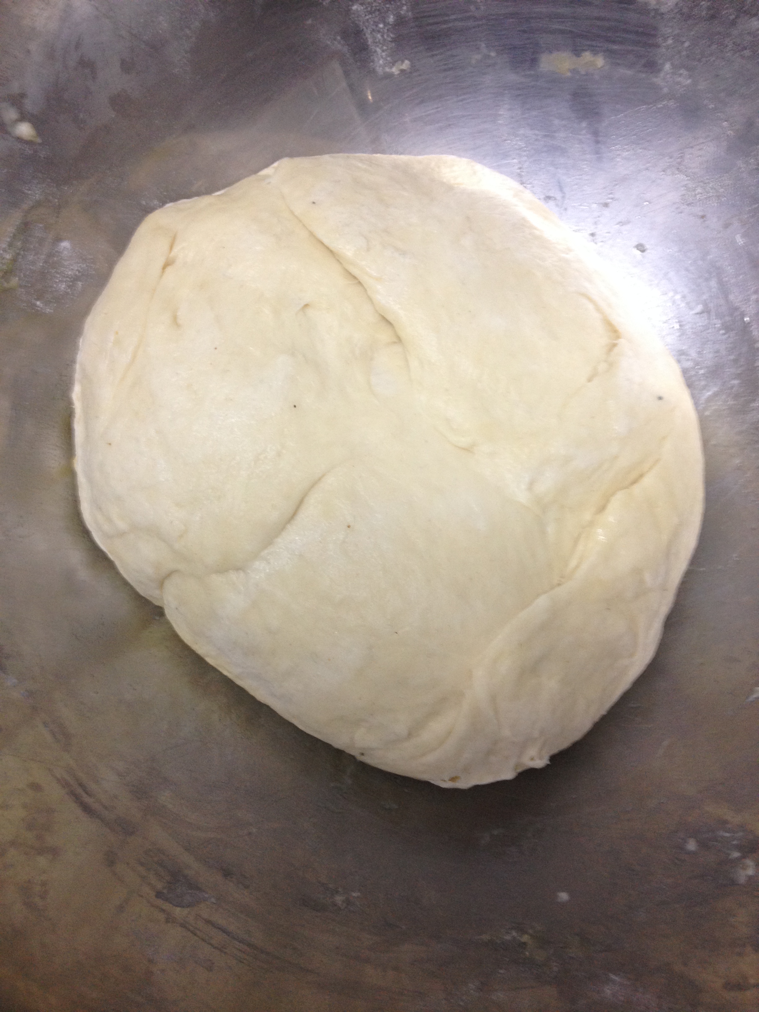 Vamos a utilizar el mismo amasado que usábamos en la receta de focaccia de tomates secos y sardinas y lo que básicamente pretendemos es que la masa se amase sola. Para ello, ponemos la bola de masa sobre una superficie de trabajo (la encimera, tu taller de motos, lo que quieras) bien limpia y lo que hacemos es estirar de la esquina de la bola hacia arriba y a la izquierda y después de estirar, llevamos la punta de la masa hacia el centro. Luego las tres siguiente esquinas. Esto tiene que ser en un movimiento rápido entre cada esquina. Si visitáis el enlace de la focaccia, podréis ver fotos del proceso, pero no tiene mucho misterio. Una vez estiradas las cuatro esquinas (esto podría ser una conversación de pilinguis…), damos la vuelta a la bola, dejando las esquinas hacia abajo y dejamos reposar unos 10 minutos. Después del reposo, repetimos el proceso de estirado y reposo dos o tres veces más, en total unos 40 minutos. Después de este proceso, ponemos la bola en un recipiente con la base aceitada, tapamos con un trapo húmedo y esperamos a que doble su volumen durante 1h.
