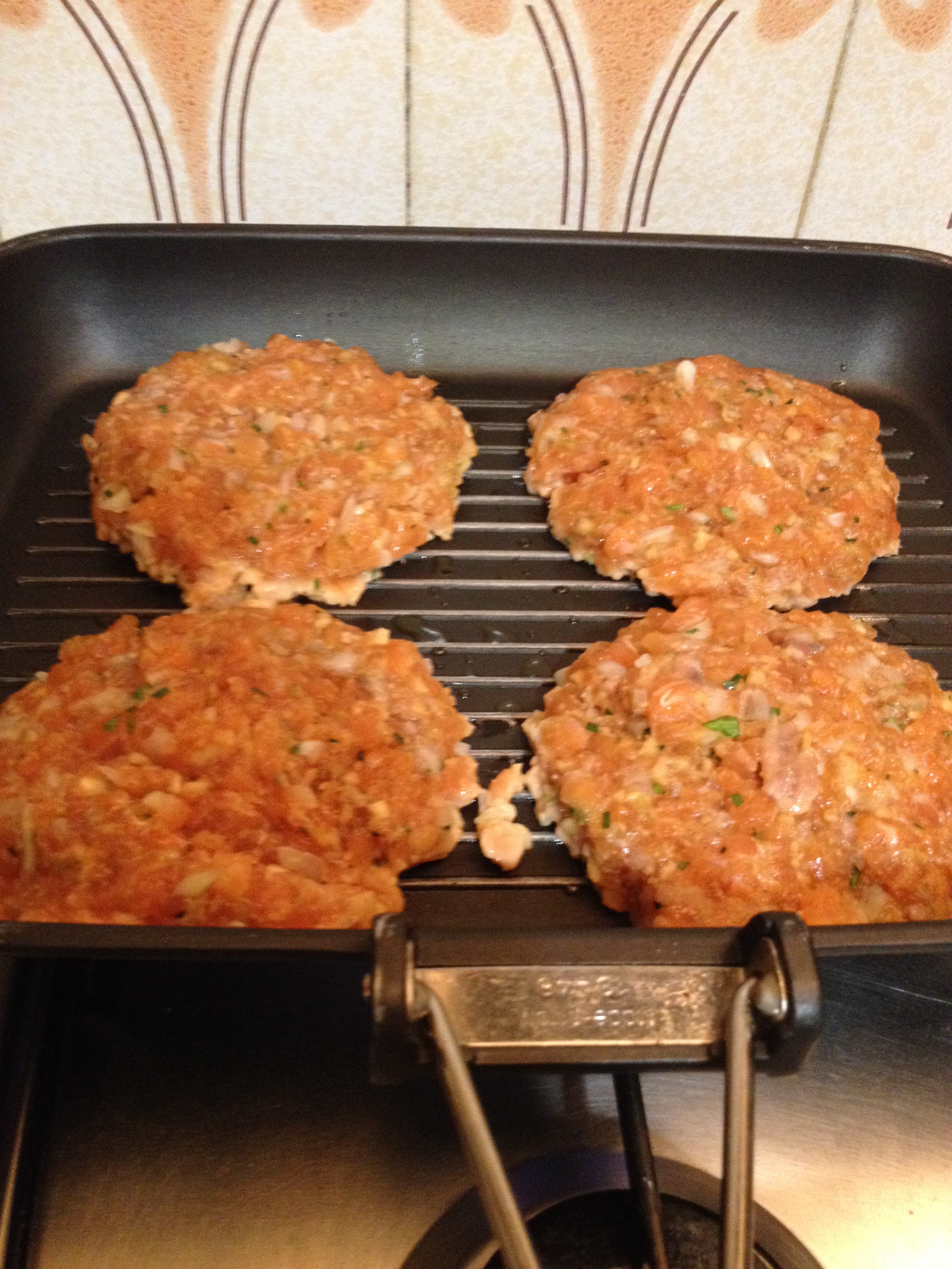 Pasado el tiempo de rigor, dividimos la mezcla en cuatro partes iguales y con las manos les damos forma de hamburguesa.