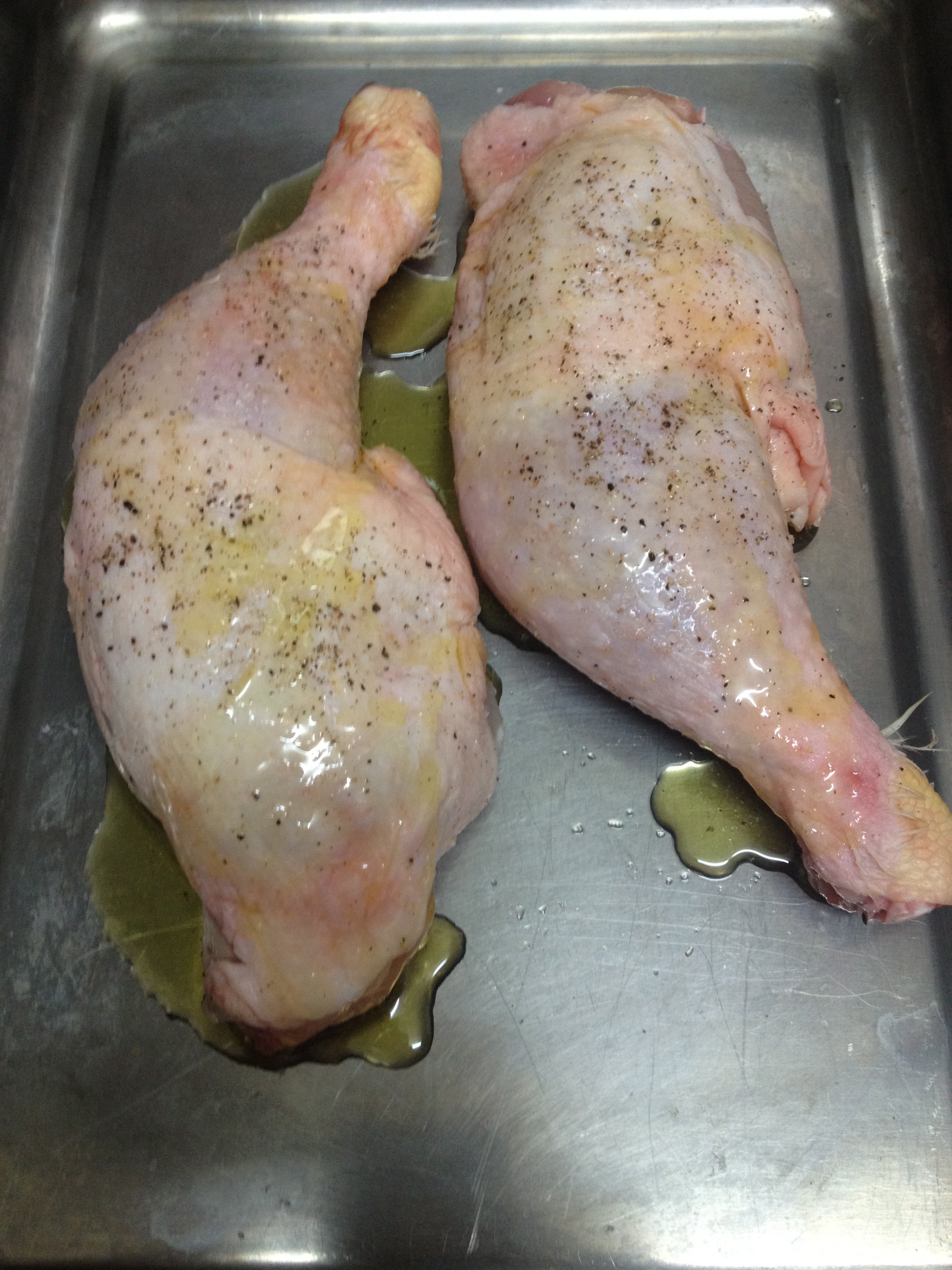 Ponemos un poquito de aceite también sobre los muslos, pero sin venirte arriba porque el muslo ya soltará su grasa y si no, te encontrarás una piscina de grasaza que, por mucho que te empeñes, no alimenta ni da sabor; sólo anima tu lorza.