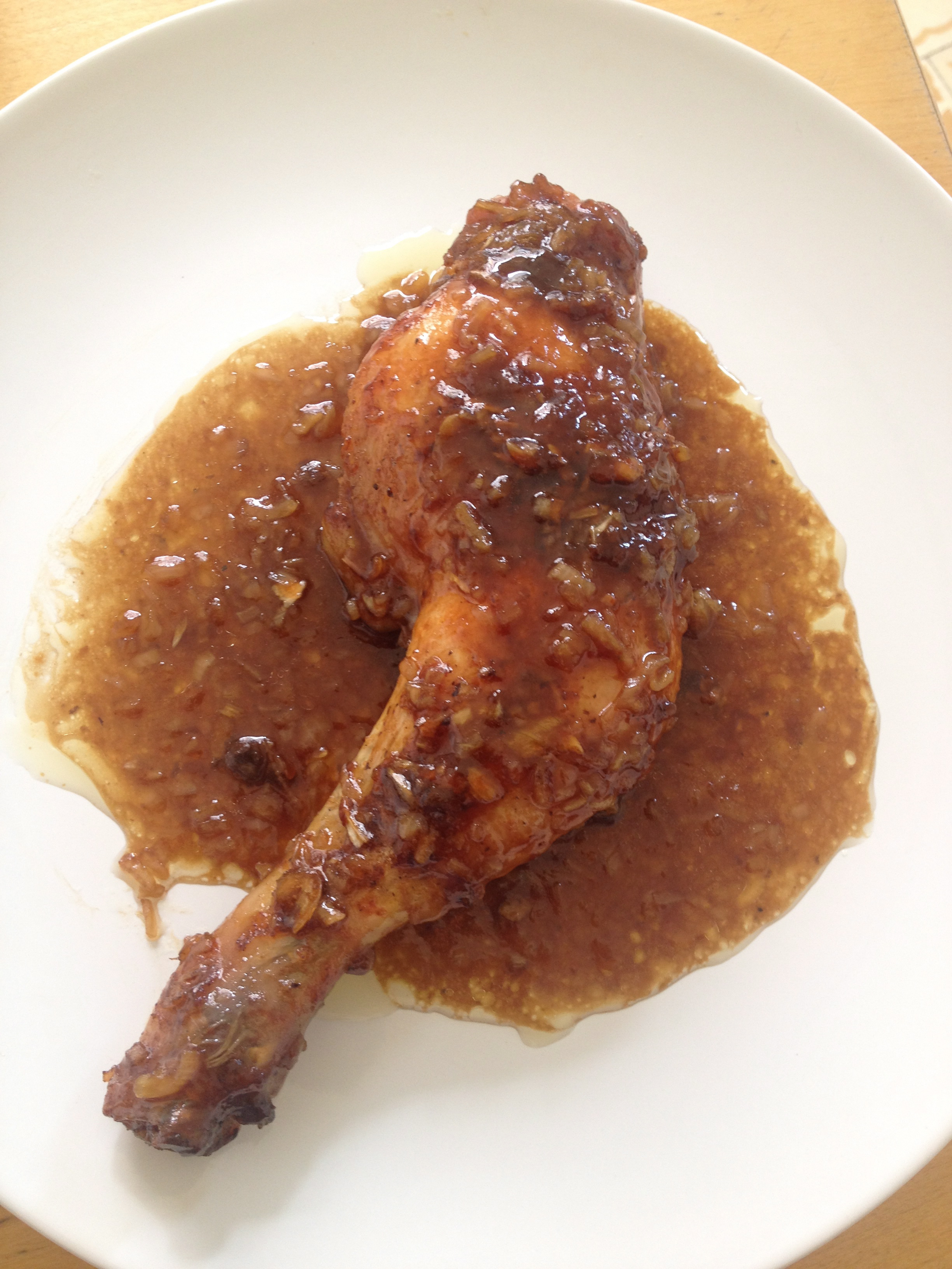 Ponemos al horno durante 60 minutos, dándole una vuelta a los 30 minutos. Pasado este tiempo, el pollo ya estará hecho, pero ahora es cuando le echamos toda la mandanga (para cortas, ahora hay que echar la lata de coca-cola, su contenido nada más, y el sobre de sopa de cebolla, también sólo el contenido).