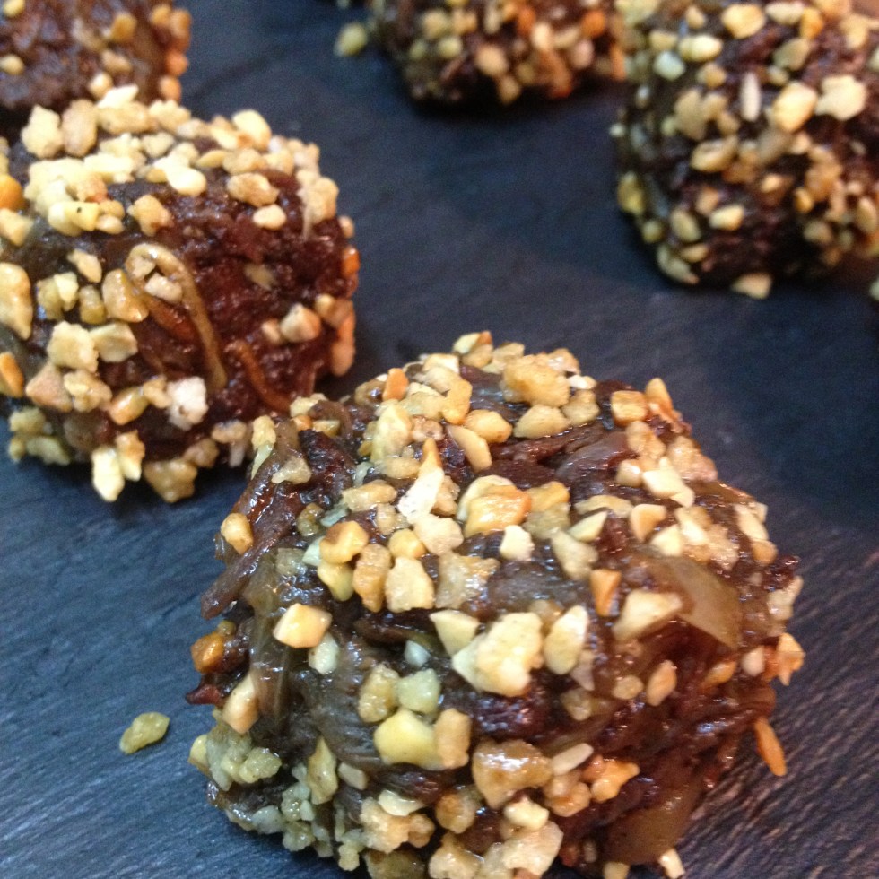 Mousse de foie con compota de manzana, pistachos y reducción de Pedro Ximenez al romero