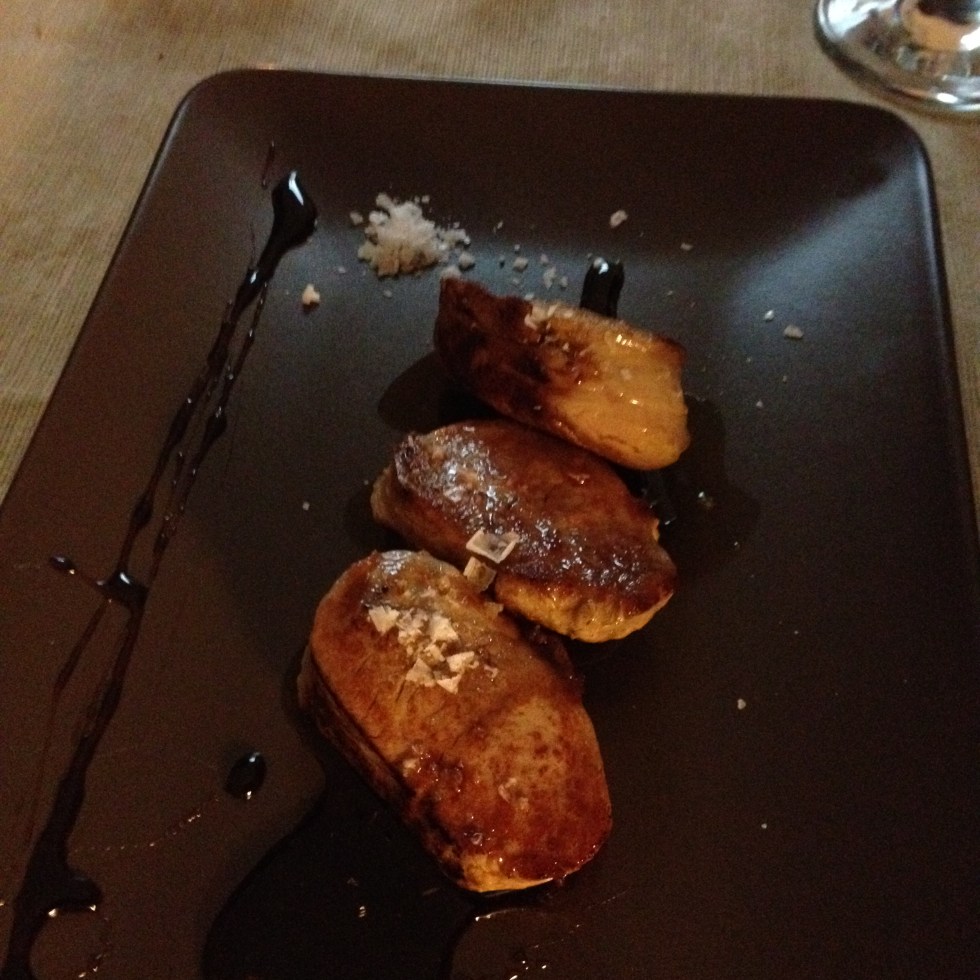 • Mousse de foie con compota de manzana, pistachos y reducción de Pedro Ximenez al romero